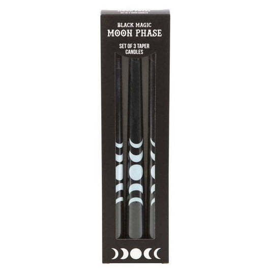 Set of 3 Black Magic Moon Phase Taper Candles